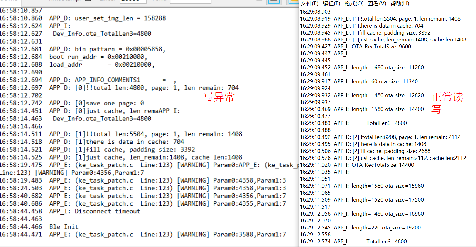 通过自己的蓝牙协议下载OTA的bin文件,每次下载一包去写一次FLASH,在SDK1.0.2上的代码是已经调通的,读写没有异常。