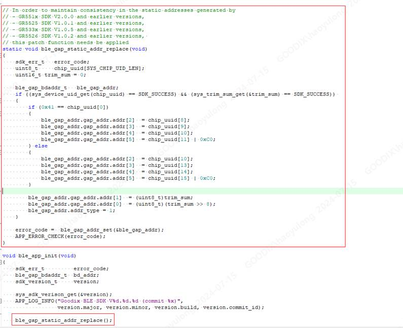 升级到最新SDK时,若要保持BLE Static Address一致,需使用以下patch。