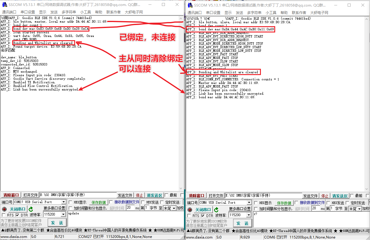 3、我主从机根据是否已绑定设备来开启或关闭白名单,怎么绑定后,从机上电无法与主机连接(广播了),但是双方同时清除绑定后,可以正常连接,为什么?