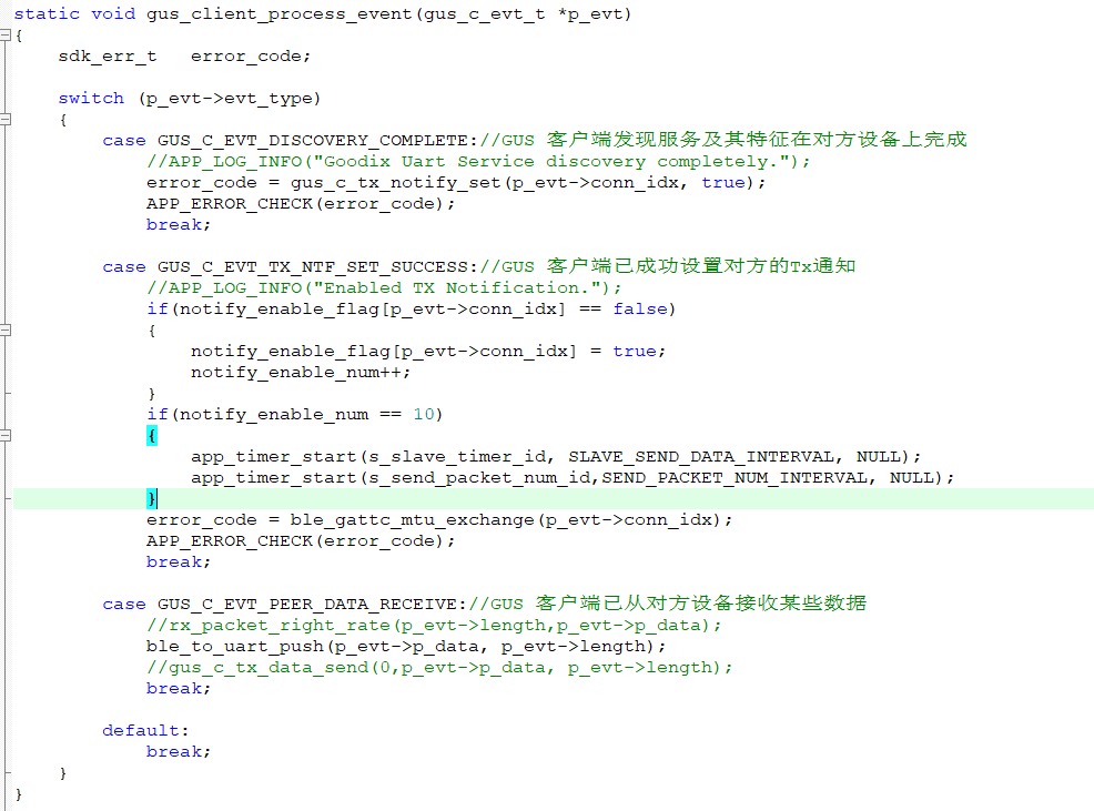发现一对一设备,主从通信是没有问题的。但是一对十的话,从机这边的数据量很大。我通过conn_idx,向从机逐一发送命令。从设备却好像接收不到。