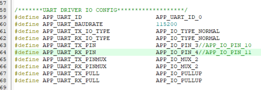 GR5513pcb中TX引脚为IO3,RX引脚为IO4,更改示例board_SK.h中的串口引脚宏定义为IO_3和IO_4
