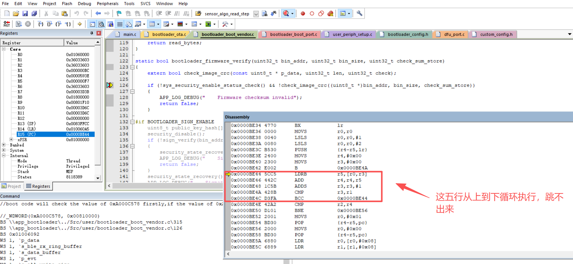 看日志新固件应该是传输过来了,但是bootloader校验卡死了,请帮忙分析一下原因,谢谢