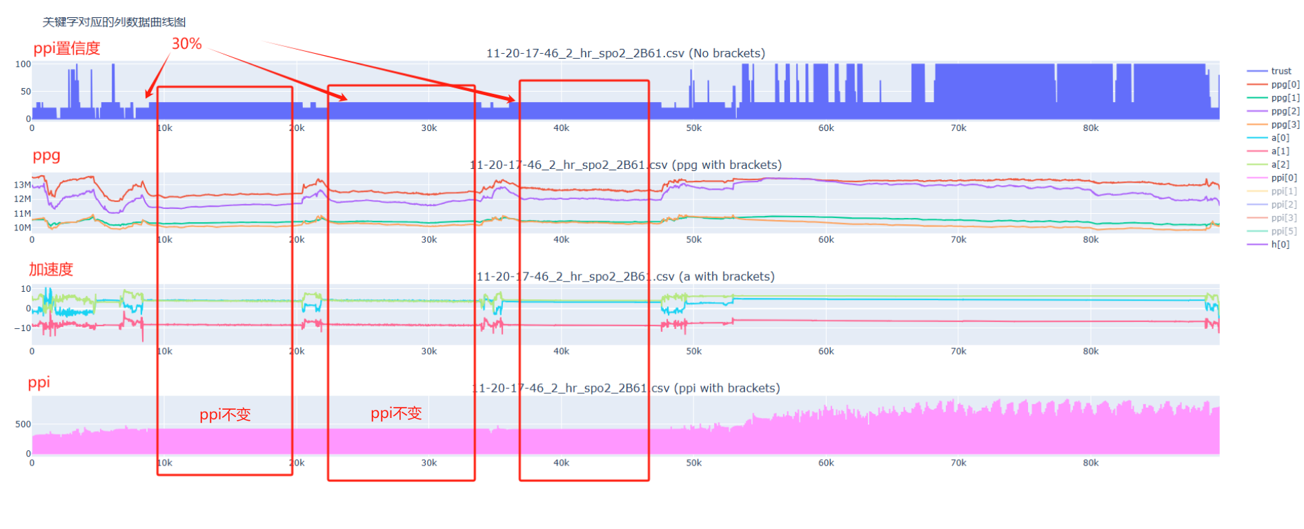 1、HRV在出值后就会持续输出,如果信号不好找不到可靠的峰就不会更新结果,所以输出的就是不变的值,置信度30%是一个比较低的状态,所以结果是相符的;